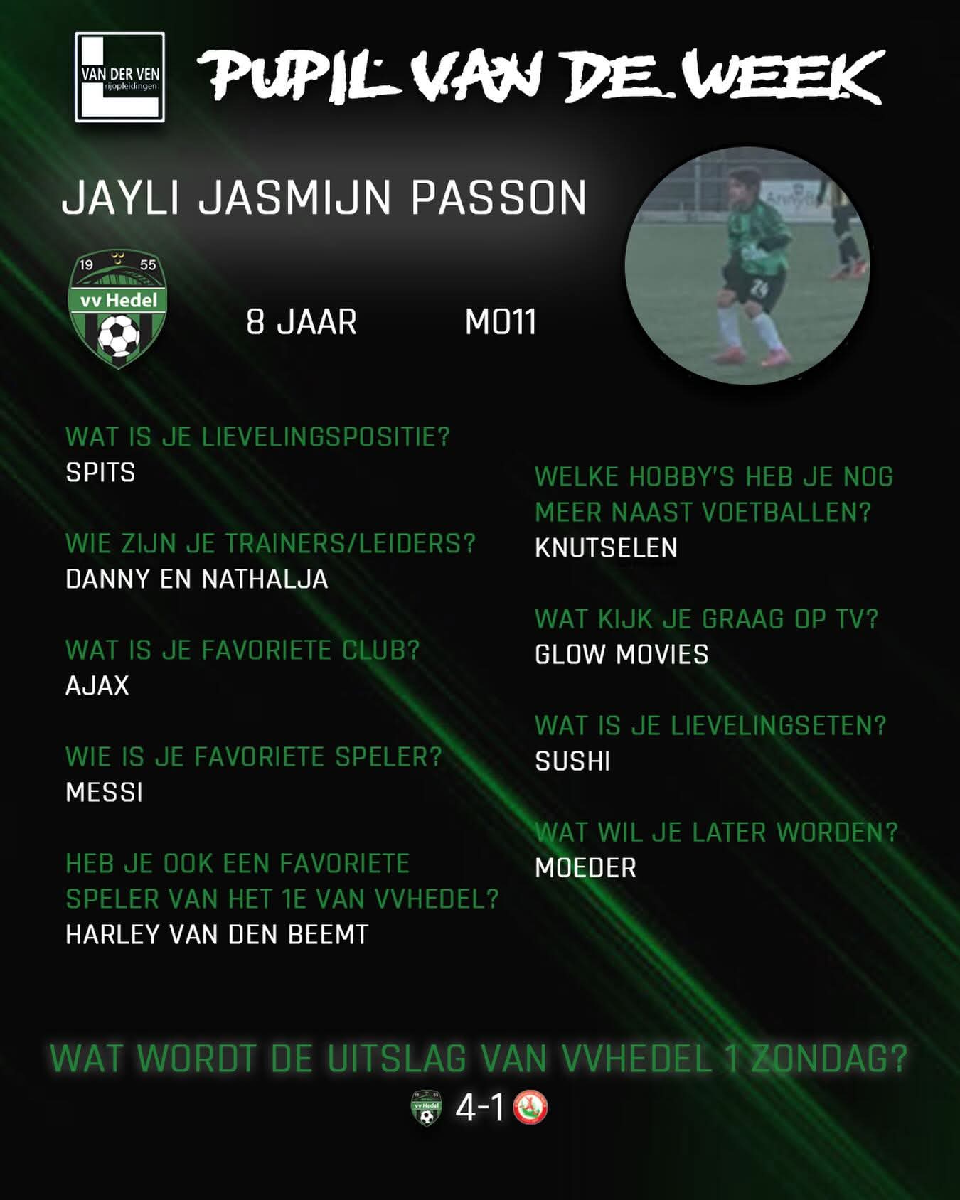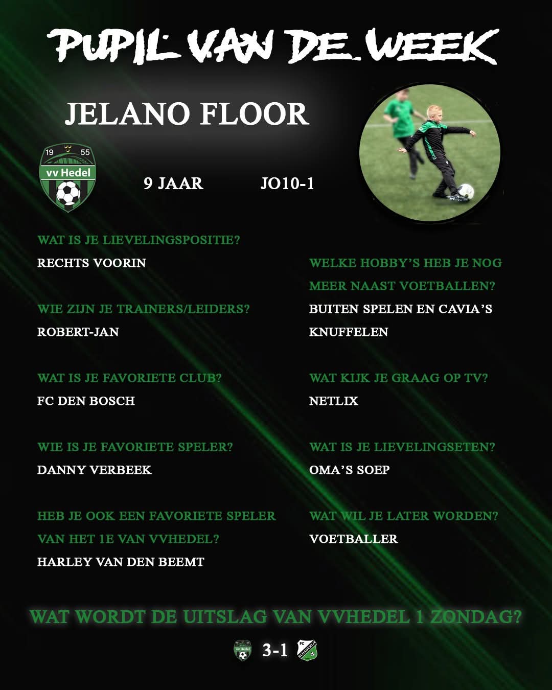 Vanaf dit seizoen heeft vv Hedel 1 bij elke thuiswedstrijd een pupil van de week.